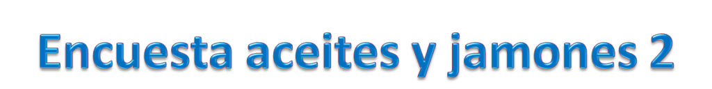Encuesta Andalucía Sabor Subasta de alimentos: Jamón y aceite. Por favor, haga click en la encuesta que le vayan indicando. Sólo aceites 1 Aceites con pan 1 Jamones 1 Sólo aceites 2 Jamones 2 Sólo aceite 3 Aceite con pan 3 Jamones 3